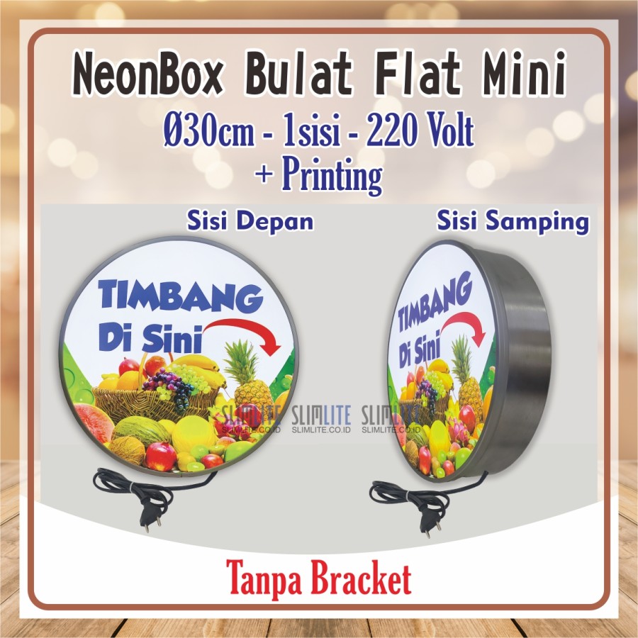 – 1 Neon Box Bulat Ø30cm 1sisi – 220volt + PRINTING Tanpa Bracket